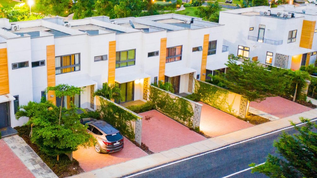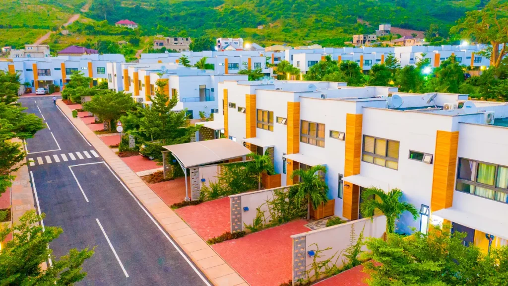 DESIGN FEATURES | Open floor plan, Gourmet kitchen with deep basin sink and modern appliances, Covered outdoor kitchen, Engineered stone countertops, Master bedroom suite with dual vanities, Spacious closets, Terrace balcony with mountain views, Front Porch, Paved double-car parking space, On-site power and water, UPVC glass windows, State-of-the-art security.